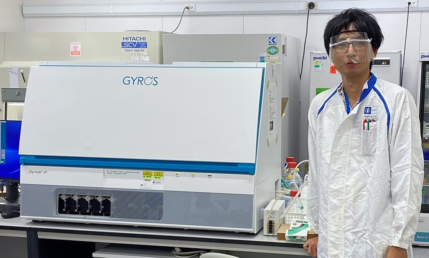 自動化イムノアッセイシステムは短時間かつ、少ない検体ボリュームで再現性高く生体試料中薬物濃度測定ができる装置。この他、デジタルELISA技術による超高感度自動イムノアッセイシステムも保有し、創薬・開発バイオアナリシスに活用している。